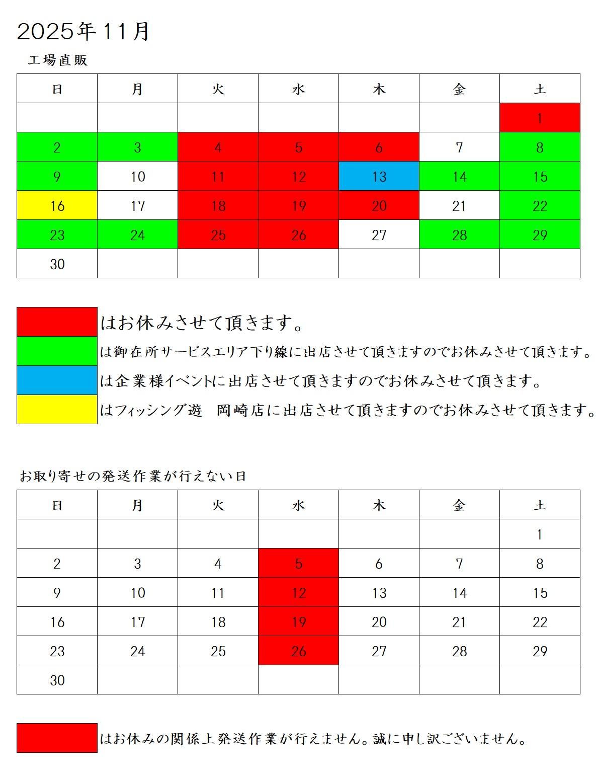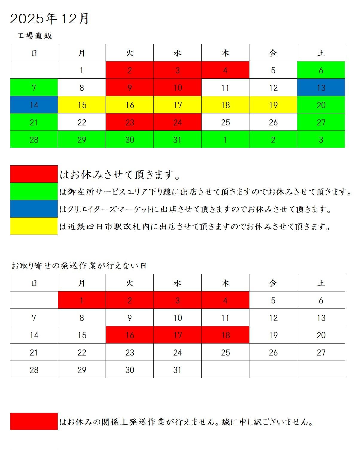 それに伴っての、お取り寄せの発送作業が行えない日をお知らせさせて頂いております。
